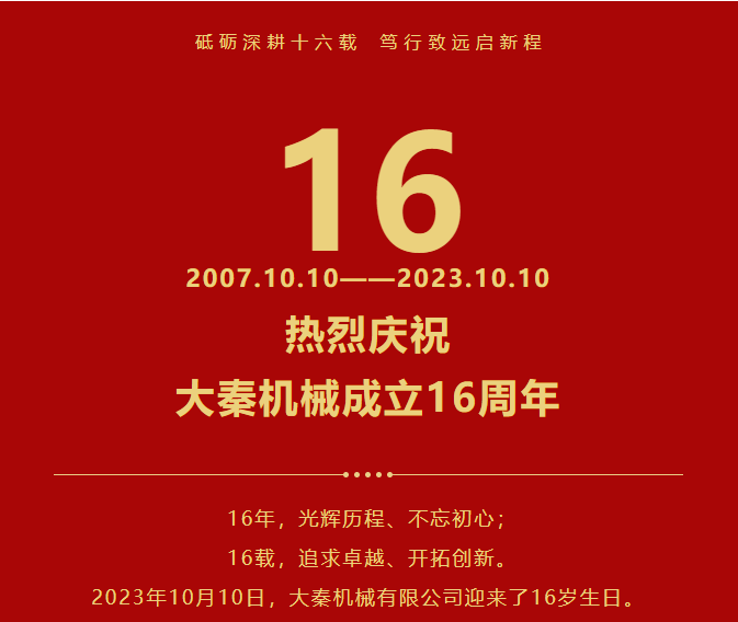熱烈慶祝丨漢中大秦機械有限公司成立16周年